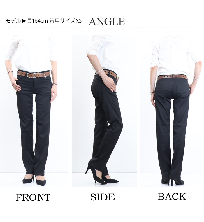 シルエットはヒップから太もも、ヒザまでは程よくフィットし、スソにかけて、ほんの少し広がりを持たせた美脚ストレートタイプ。ブーツカットを愛用されている方にもおススメのシルエットです。
