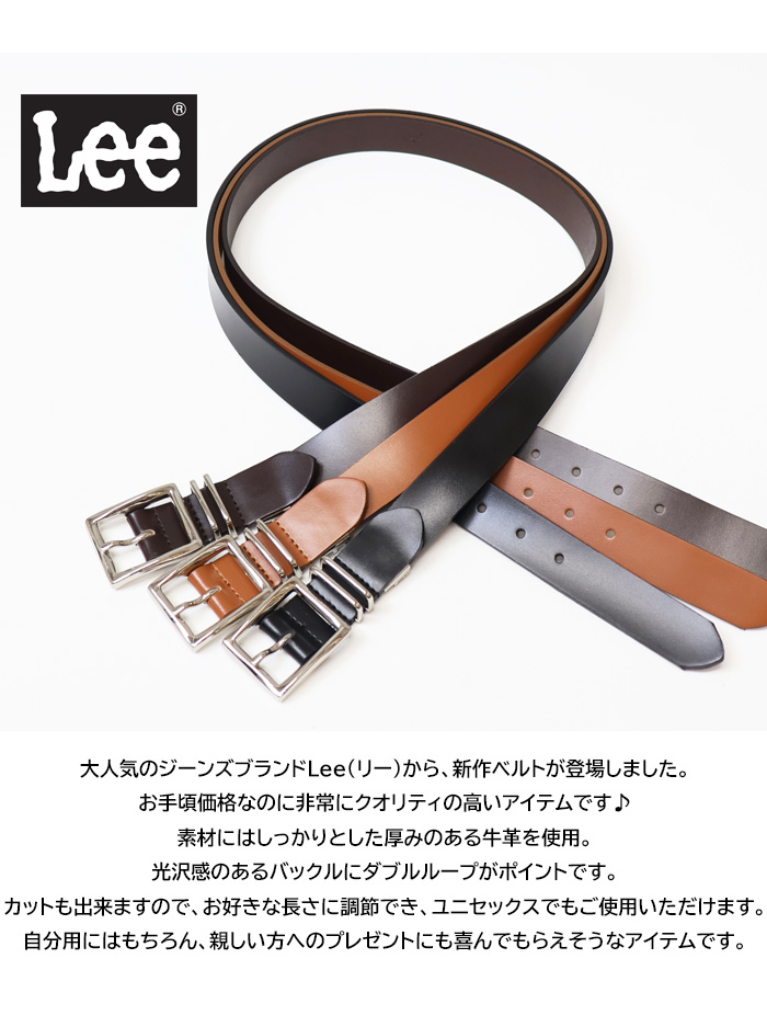 Lee リー ダブルループ レザーベルト 牛革 本革 メンズ カット可 0120609