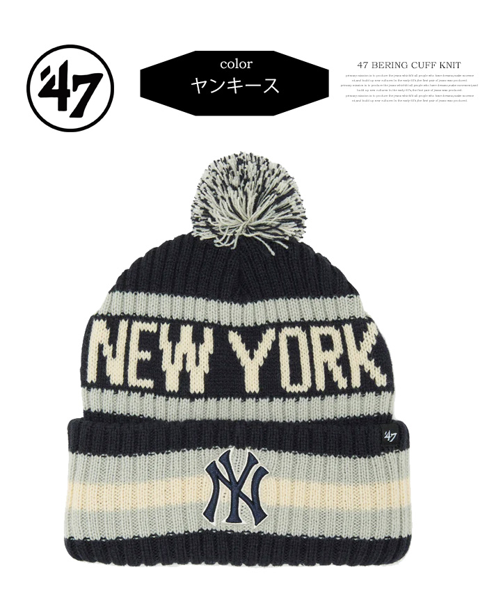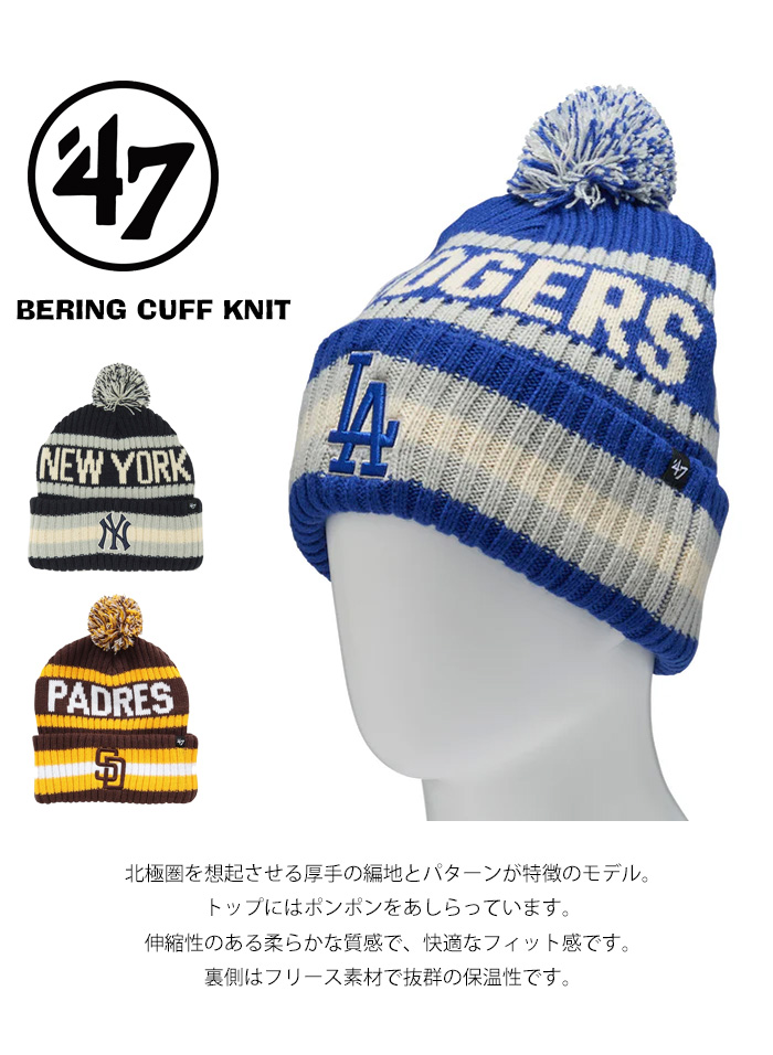 47BRAND フォーティセブン ボンボン付きニットキャップ BERING ’47 カフニット ヤンキース パドレス ドジャース ユニセックス 14936750 14936752 14936753
