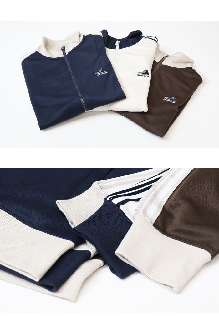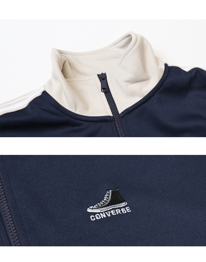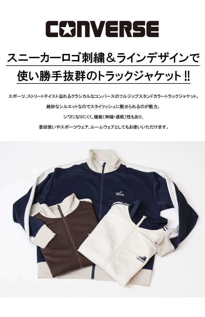 スポーツ、ストリートテイスト溢れるクラシカルなコンバースのフルジップスタンドカラートラックジャケット。絶妙なシルエットなのでスタイリッシュに魅せられるのが魅力。シワになりにくく、機能(伸縮・速乾)性もあり、普段使いやスポーツウェア、ルームウェアとしてもお使いいただけます。