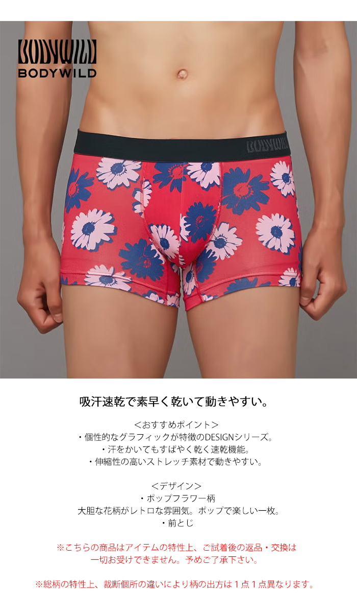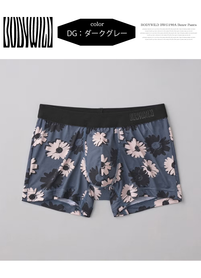 GUNZE グンゼ BODY WILD ボディワイルド ボクサーパンツ 前とじ ポップフラワー柄 吸汗速乾 総柄 アンダーウェア 下着 パンツ メンズ BWG190A