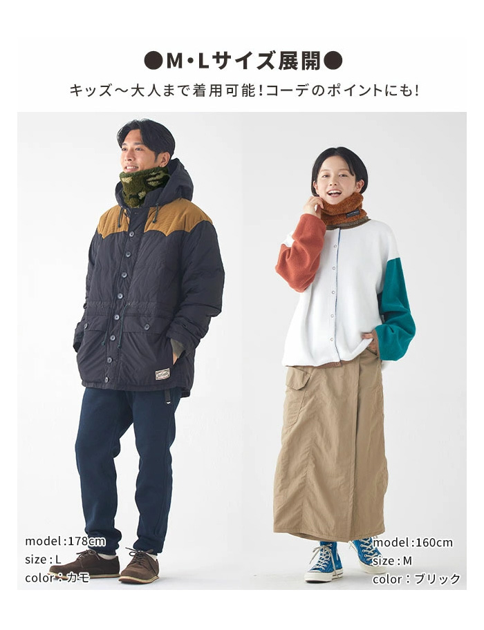 通学、通勤時のあたたかアイテムとしてはもちろん、遊び、お出かけ、キャンプなどのアウトドアにも映えるデザイン。