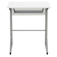スタイリッシュなループ脚の研修用デスクホワイト。限られたスペースをフル活用できる幅60cm奥行45cmのコンパクトタイプです。天板下に収納スペースがあり、サイドには左右に付け替え可能なフック(1個)がついています。組み立て後は底のアジャスターを調整してガタつきのないように設置してください。
