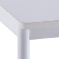 置き場所を選ばないシンプルテーブルW1000×D700ホワイト。細身の脚部ですっきりしたデザイン、天板裏はフレーム構造で安定感があります。デスクはもちろん、ワークテーブルや会議テーブルなど多目的にご利用いただけます。天板は丸角で医療施設や教育施設にも適しています。4台を島型にレイアウトすれば中央に配線コードが通せます。天板裏のフレームに脚部をビスで固定するだけの簡単組み立て。耐荷重:天板約40kg(均等荷重)