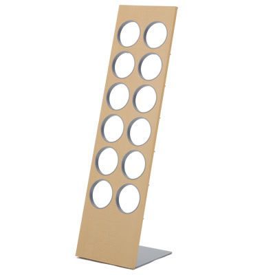 シンプルなデザイン、スリッパにもこだわりたくなるようなディスプレイ式のスリッパラック、6足収納のハイタイプです。スリッパが全部使用中の空の状態でもおしゃれに見えます! 各ホールの裏側にずり落ち防止の受けがあり、スリッパを片方づつ差し込んで6足収納します。スリッパを出し入れしやすいように傾斜がついています。ホール部分の直径は116mmです。 シリーズで同じく6足収納のロータイプと3足収納のミニタイプもあります。