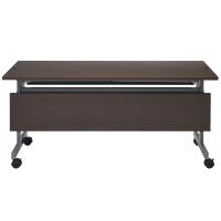 配線機能付きフォールディングテーブルIVのW1500用幕板ダークブラウン。テーブル本体の前面に設置して足元を隠し、また内側の配線レールにコンセントタップやコード類をすっきり収納できます。フォールディングテーブルは幕板設置後も折り畳んでコンパクトに収納できます。テーブル本体は別売です。