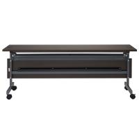 配線機能付きフォールディングテーブルIVのW1800用幕板ダークブラウン。テーブル本体の前面に設置して足元を隠し、また内側の配線レールにコンセントタップやコード類をすっきり収納できます。フォールディングテーブルは幕板設置後も折り畳んでコンパクトに収納できます。テーブル本体は別売です。