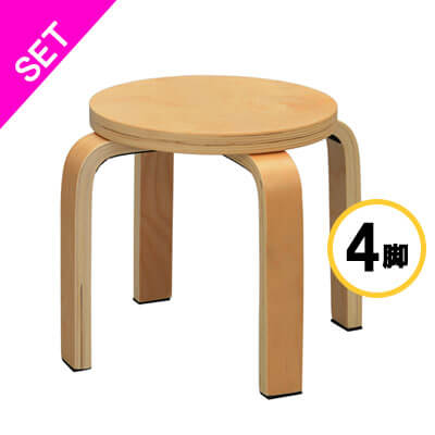 木製丸椅子ロー ナチュラル 4脚セット SHSC-LNA-4SET