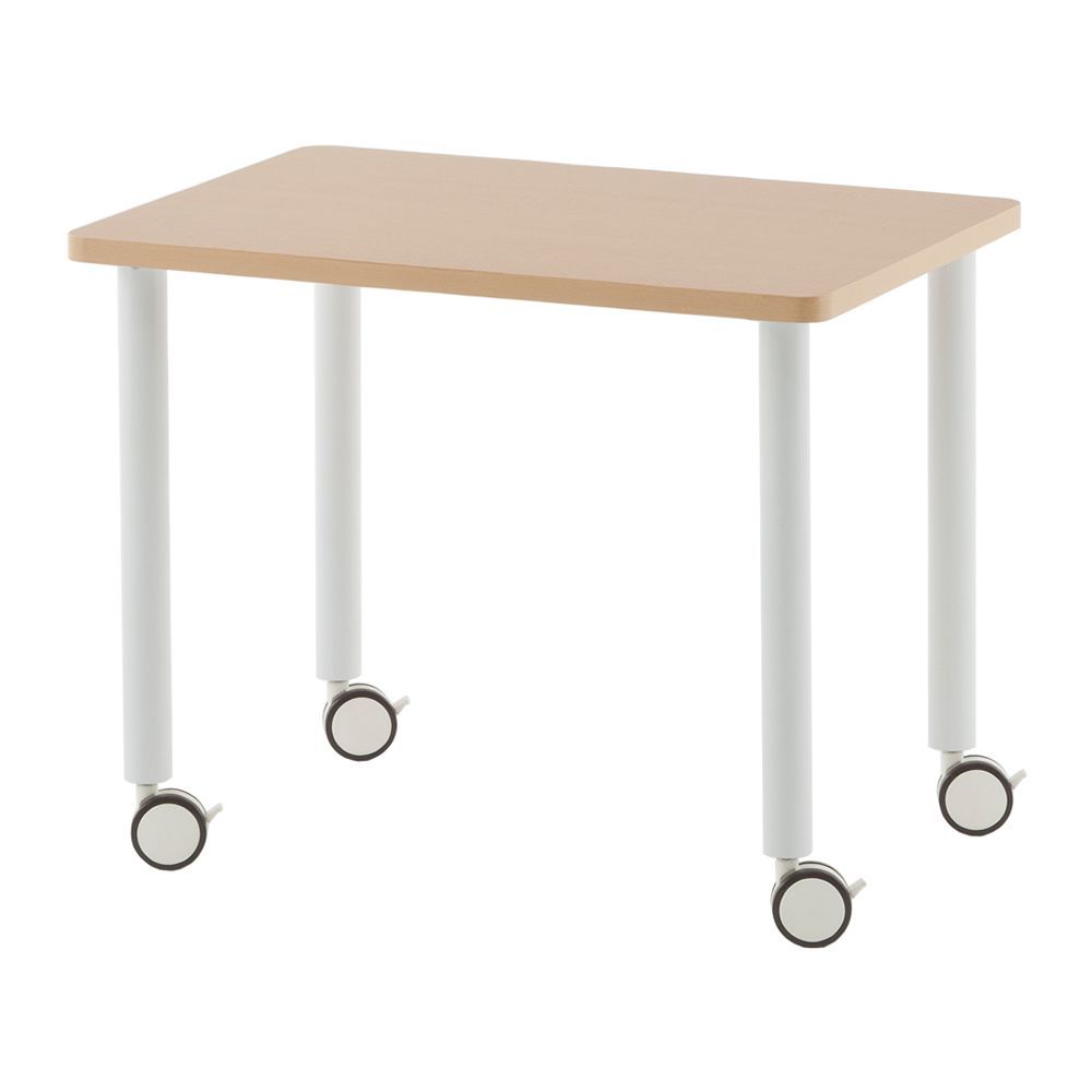 material (素材): 天板:低圧メラミン樹脂化粧木質ボード、ペーパーコア、PVCエッジ/脚部:スチール(粉体塗装)/キャスター:ウレタン