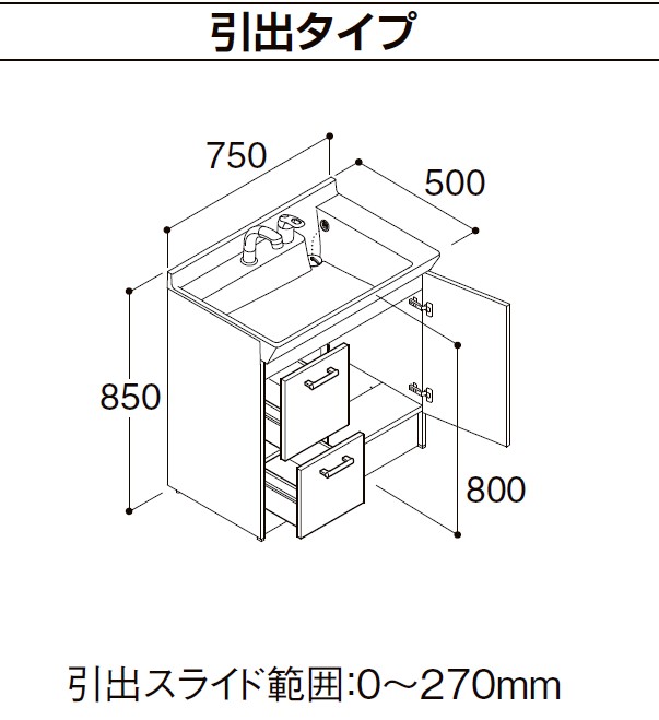 FTPH-755SYN/VP1H LIXILスタンダード 化粧台本体 オフト フィット 引出タイプ シングルレバー洗髪シャワー水栓 寒冷地 間口750mm メーカー直送