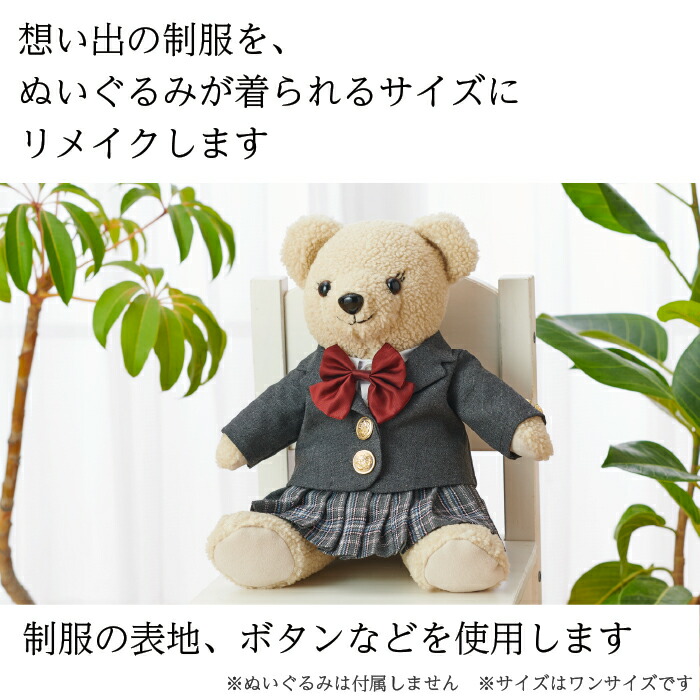 リアット 制服リメイク「おもいで制服 ぬいぐるみサイズ シャツ・丸衿ブラウス」/ 小学校 中学校 高校 学生服 ミニチュア制服 ギフト プレゼント メモリアル