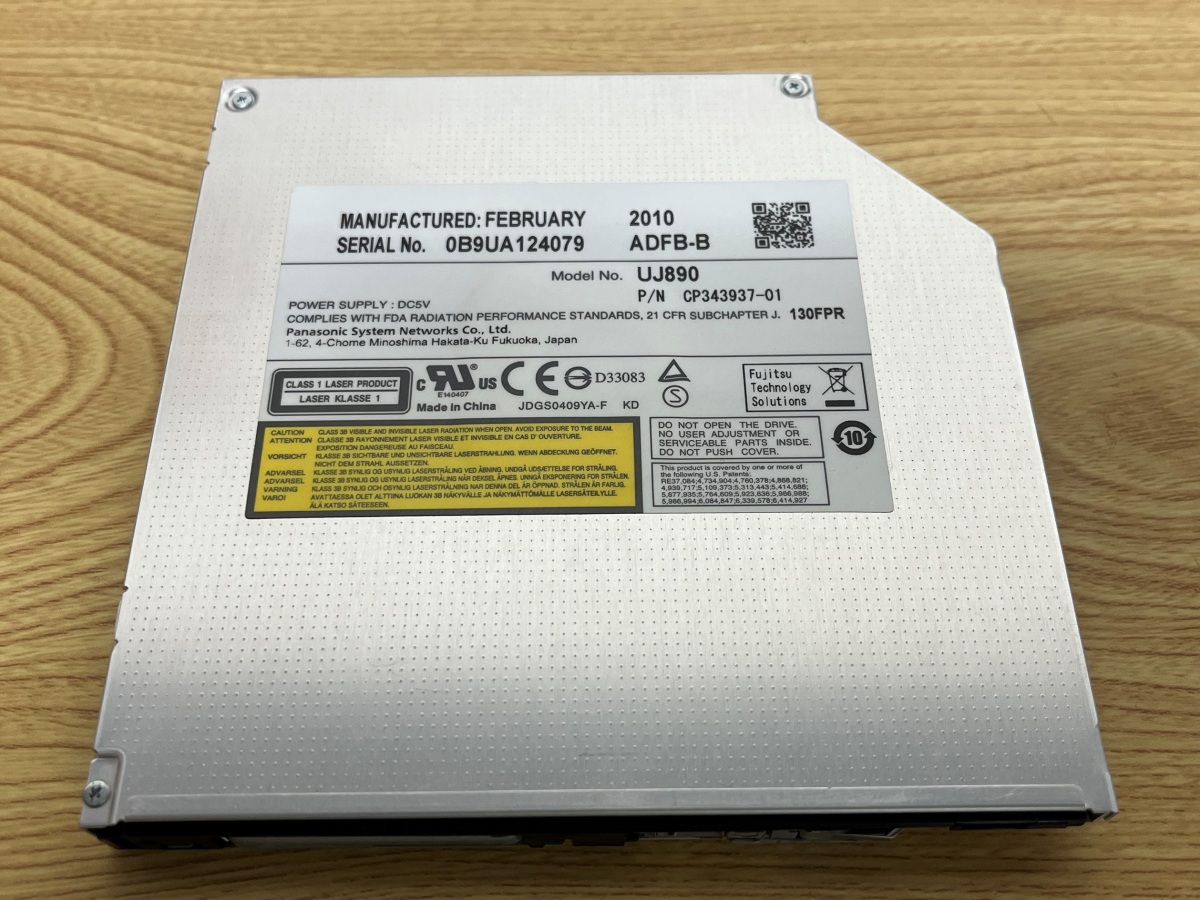 中古 DVDスーパーマルチドライブ 型番 UJ890SATA接続(コネクタ)厚み 12.7mm外形寸法:128x129x12.7mm