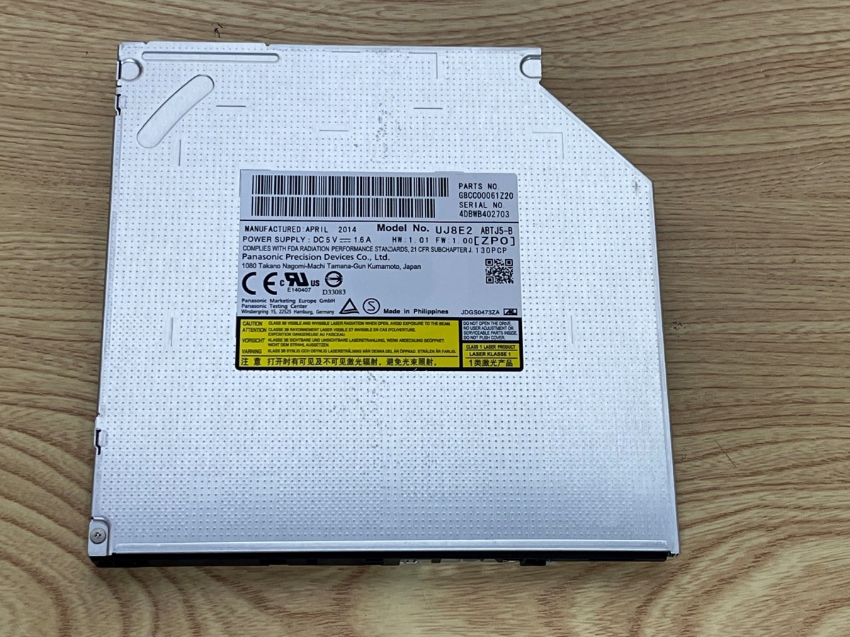 中古 DVDスーパーマルチドライブ 型番 UJ8E2 SATA接続(コネクタ)厚み 9.5mm ウルトラスリム 外形寸法:128x129x9.5mm