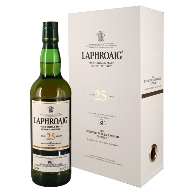 LAPHROAIG AGED 25 YEARS THE BESSIE WILLIAMSON STORYアイラモルトの象徴「ラフロイグ」が誇る長期熟成原酒を、蒸溜所の精神とともにボトリングした特別な25年熟成。ラフロイグ初の女性蒸溜所長として知られるベッシー・ウィリアムソンへのオマージュとして生まれた、ストーリー性豊かな一本です。