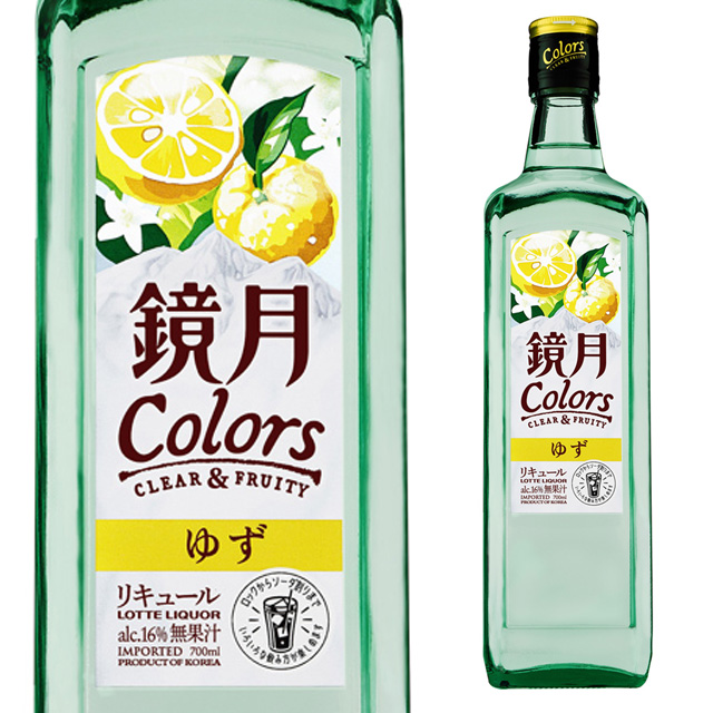 鏡月Colorsゆずは、鏡月Greenをベースにしたゆず風味のお酒です。鏡月Green本来の「天然水仕上げの澄みきった味わい」に、自然感ただよう、すっきりとした果実感が感じられる、爽やかな味わいを実現しました。ロックや炭酸割りなど、お好きな飲み方でお愉しみいただけます。
