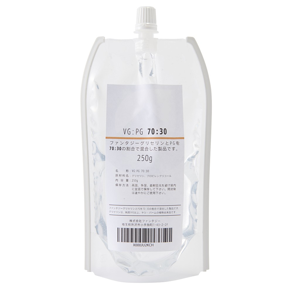 ファンタジーグリセリン(VG)とプロピレングリコール(PG)を70:30でミックスした製品です。容量は、250gです。