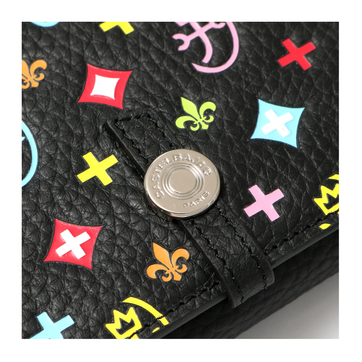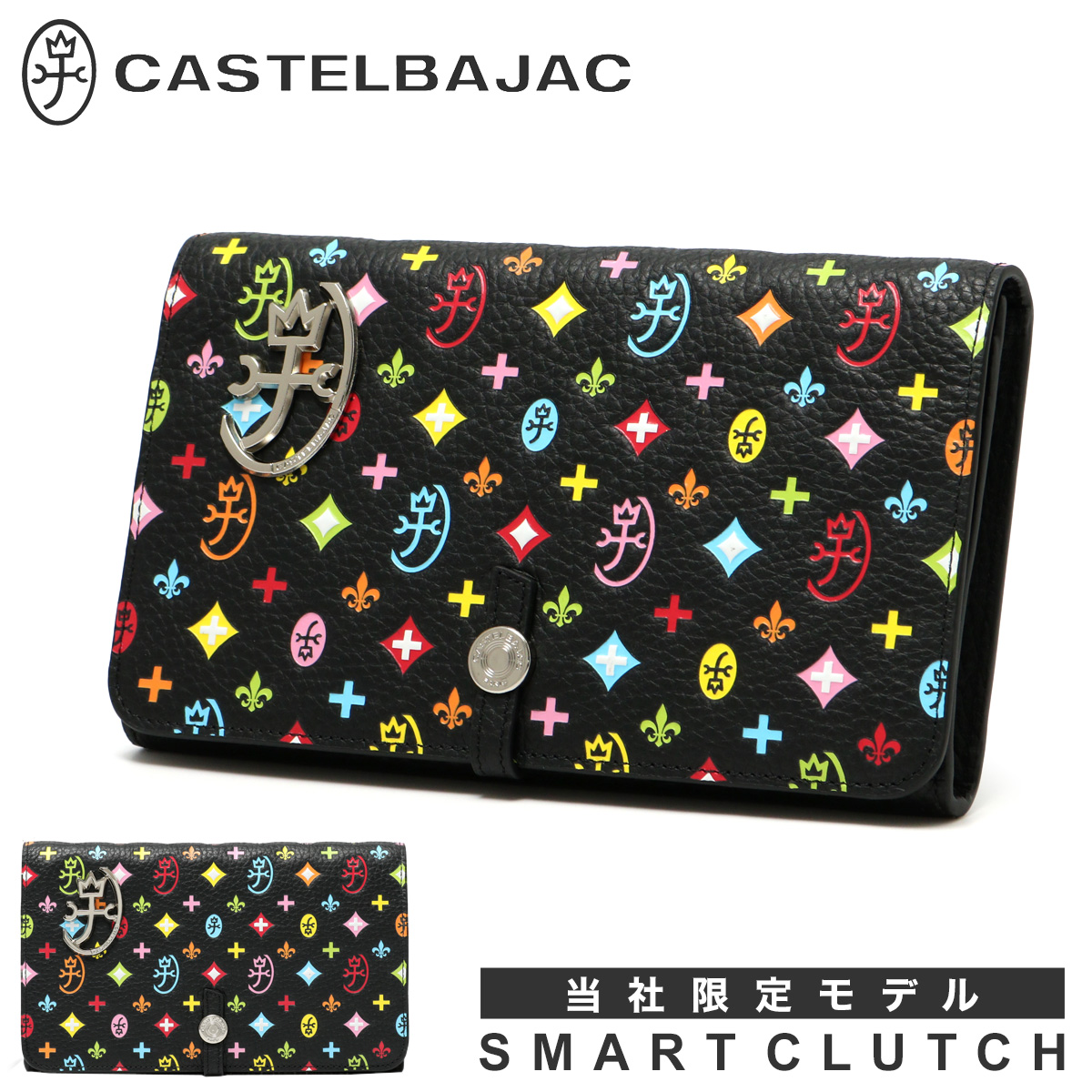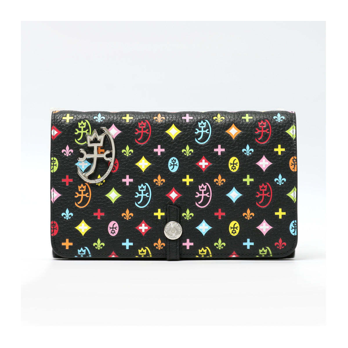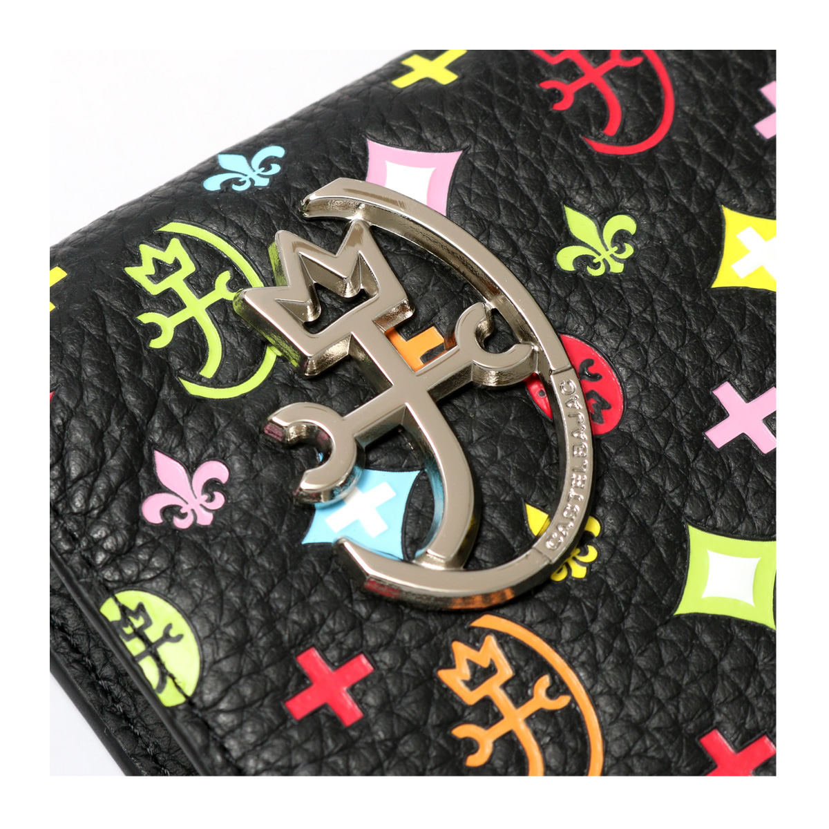 別注カラーのカラフルなモノグラム柄は、重厚感のあるシックなブラックカラーに映えるカラーリングで、大人の遊び心をくすぐります。内部のキーホルダーチェーンは別注だけの仕様。着脱可能で更に使い勝手が広がります。