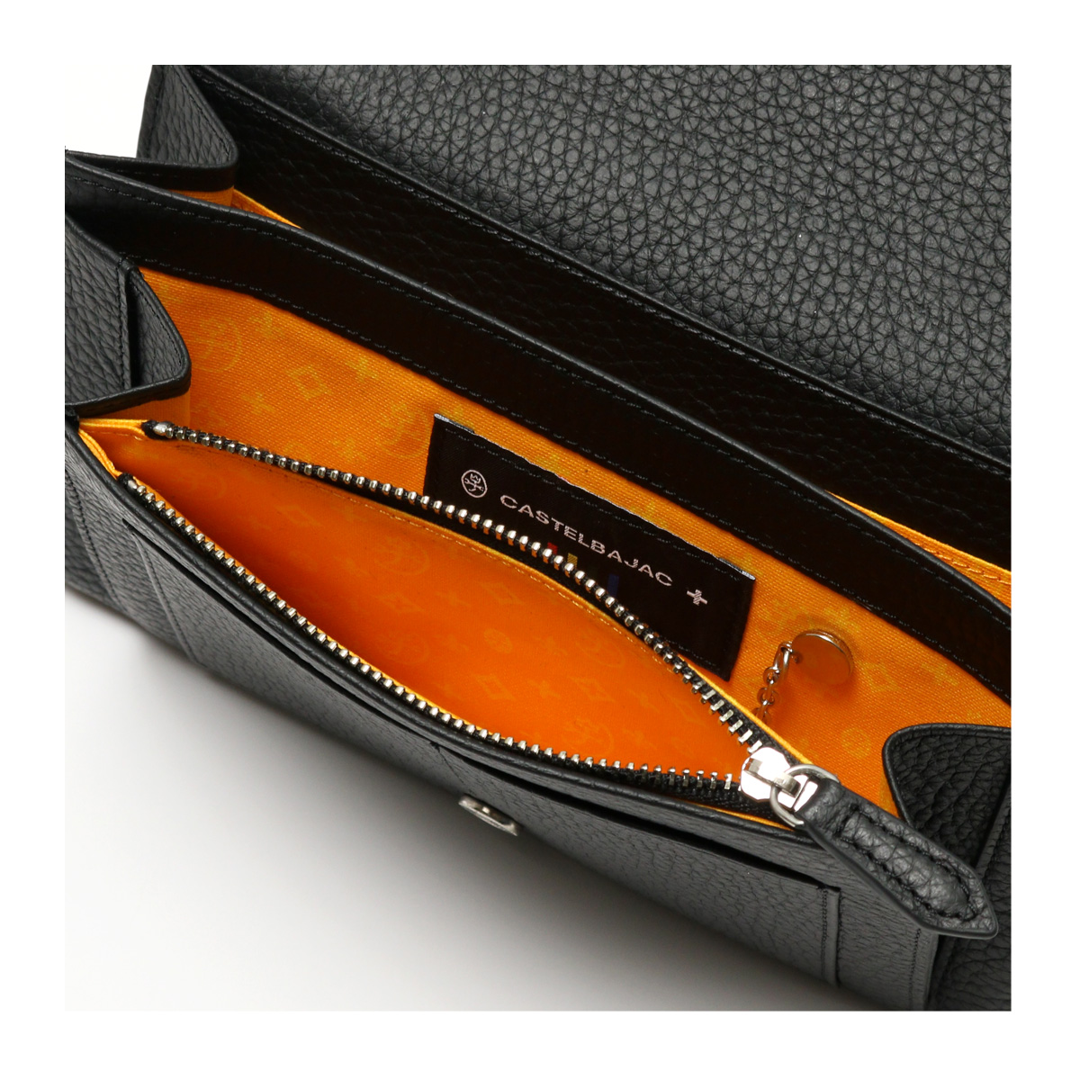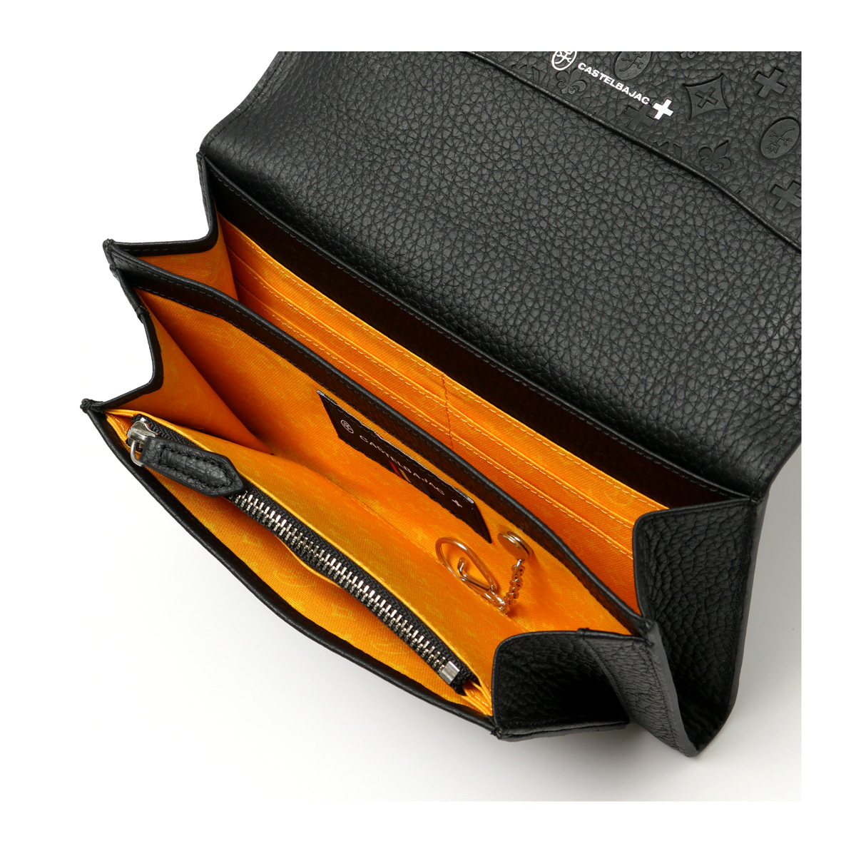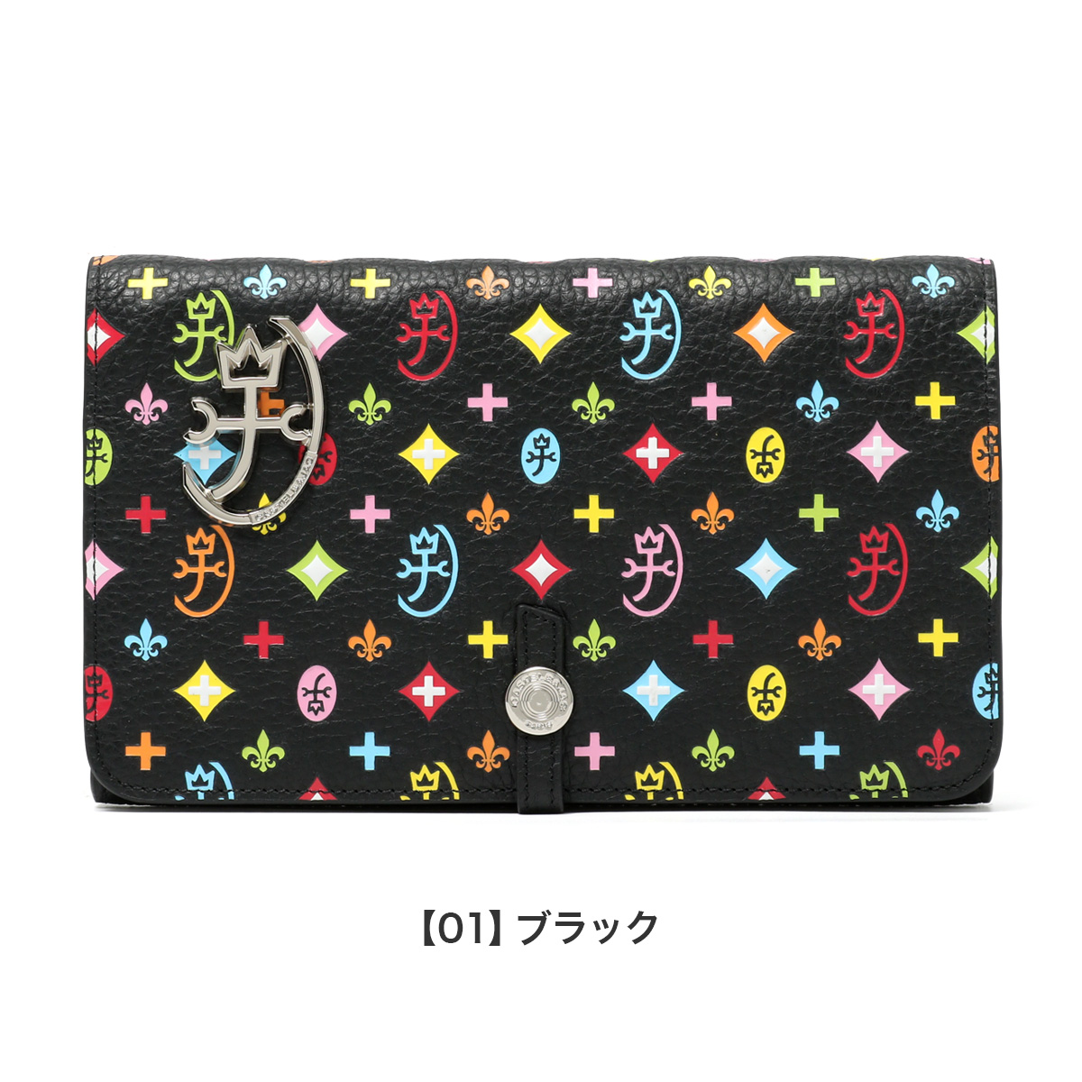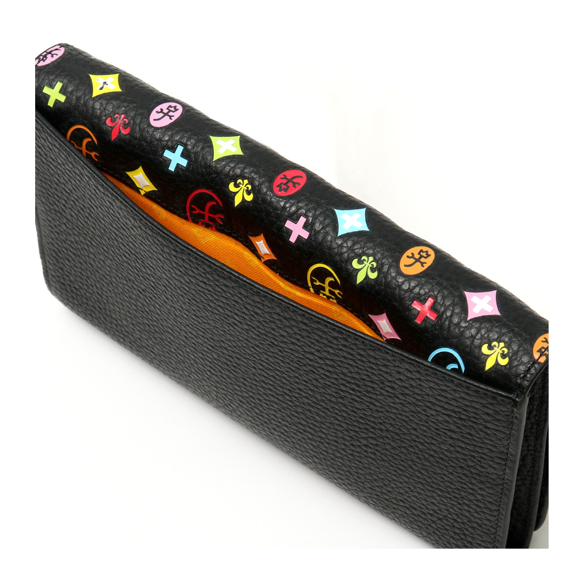 別注カラーのカラフルなモノグラム柄は、重厚感のあるシックなブラックカラーに映えるカラーリングで、大人の遊び心をくすぐります。内部のキーホルダーチェーンは別注だけの仕様。着脱可能で更に使い勝手が広がります。