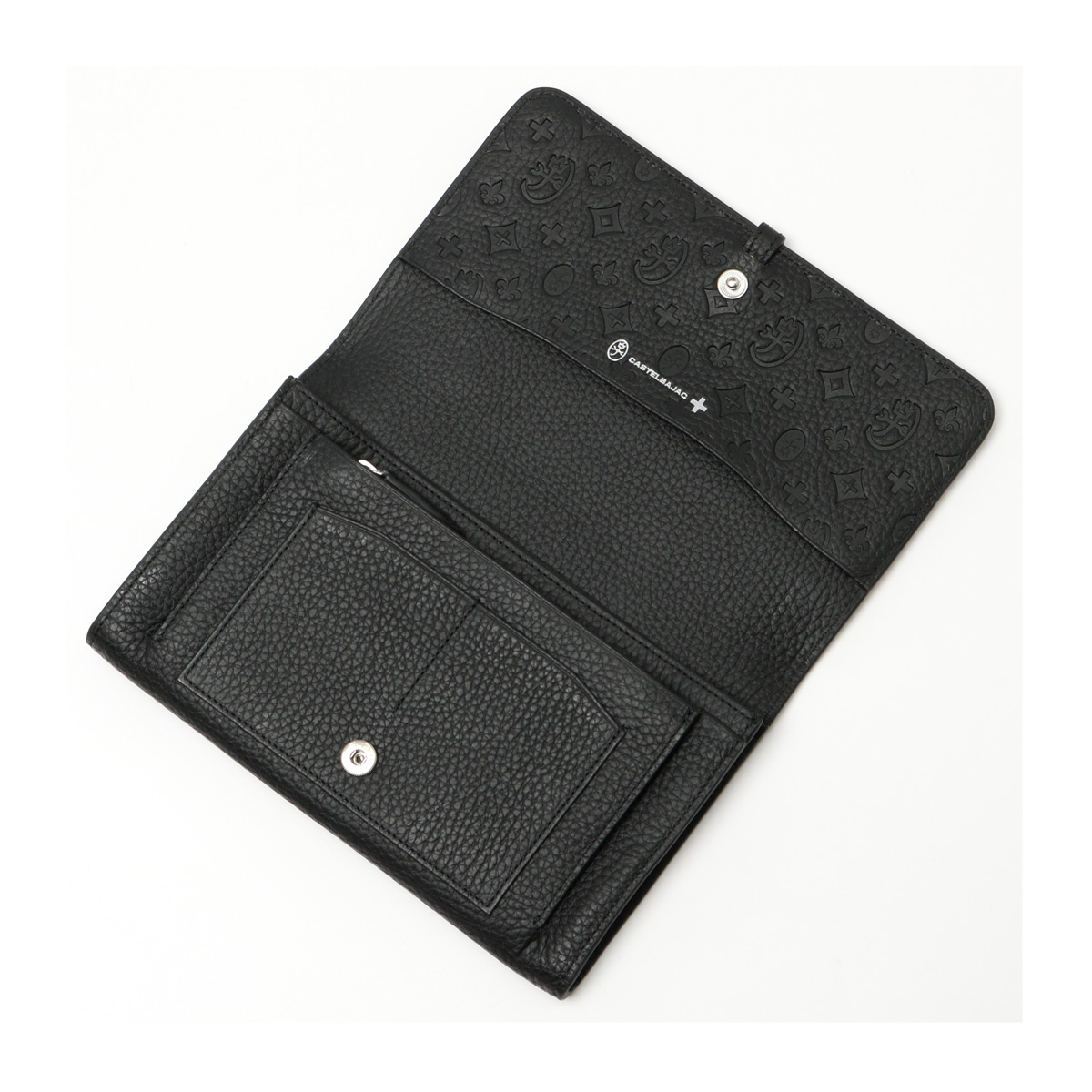 本体生地にはシュリンク調の牛革を使用。内装もオールレザーで、開けた姿も様になる贅沢仕様です。