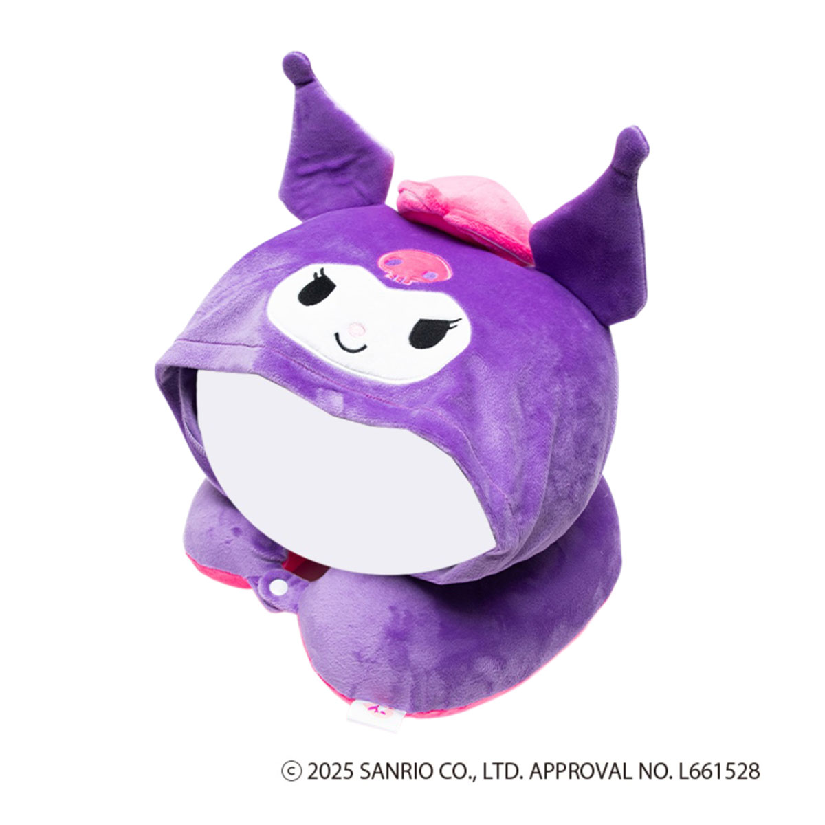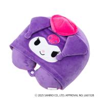 顔がすっぽり隠れるおおきなフード付き。ふわふわ生地で気持ちいいネックピローです。