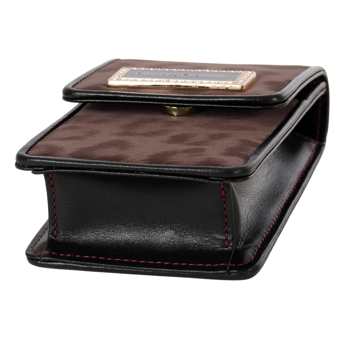 ソフトで手触りの良いヒョウ柄素材を贅沢に使った高級感あふれる「ソフトレオパード」シリーズ。トーンオントーンの配色なのでインパクト強めに見えがちなヒョウ柄も、シックで洗練された印象に仕上がっています。石をたっぷり使ったロゴの金具も華やかさをプラスしたゴージャスポイント。