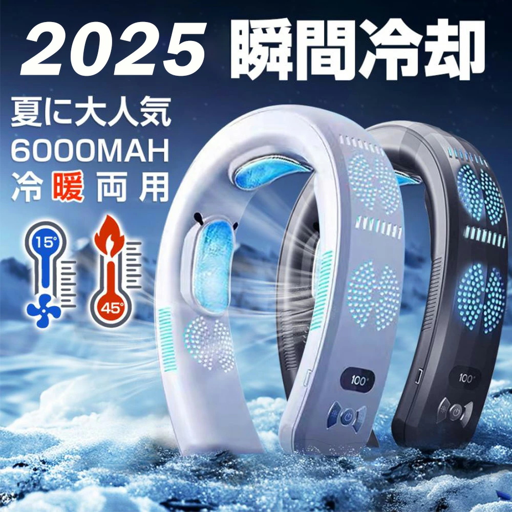 ネッククーラー ネックファン 冷却プレート 首掛け扇風機 風量3段階調節 LCD電量・風速表示 6000mAh大容量バッテリー 羽根なし 携帯扇風機 静音 熱中症対策
