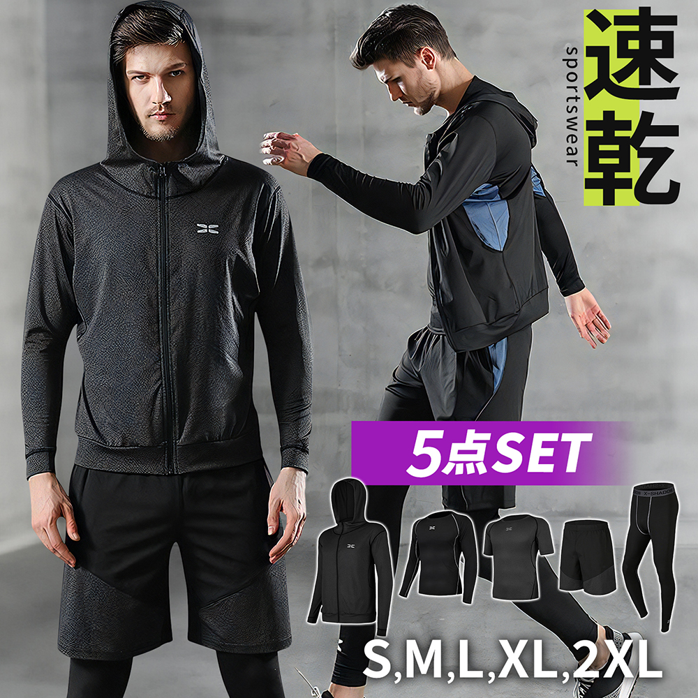 メンズ スポーツウェア 5点セット コンプレッションウェア ジム ランニング トレーニングウェア 上下 長袖 半袖 おしゃれ 父の日 爆買