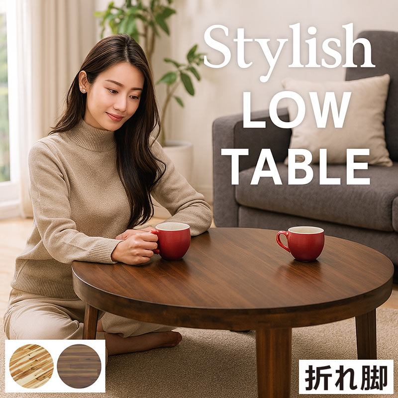 折りたたみ式で省スペース。和室にも洋室にも合う木製座卓。おしゃれな和モダン丸テーブル。