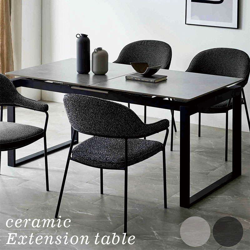 セラミックテーブル 伸縮 伸長式 ダイニングテーブル 150cm 180cm エクステンションテーブル 4人 6人 4人用 6人用 グレー ダークグレー ライトグレー アイアン脚 おしゃれ モダン 高級感 スタイリッシュ 新生活 食卓 テーブル セラミック天板 組立品