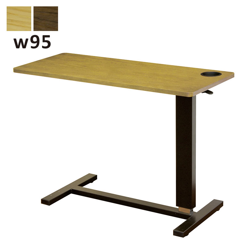 ベッドサイドテーブル 介護 昇降式 幅95cm キャスター付き ガス圧 カップホルダー付き