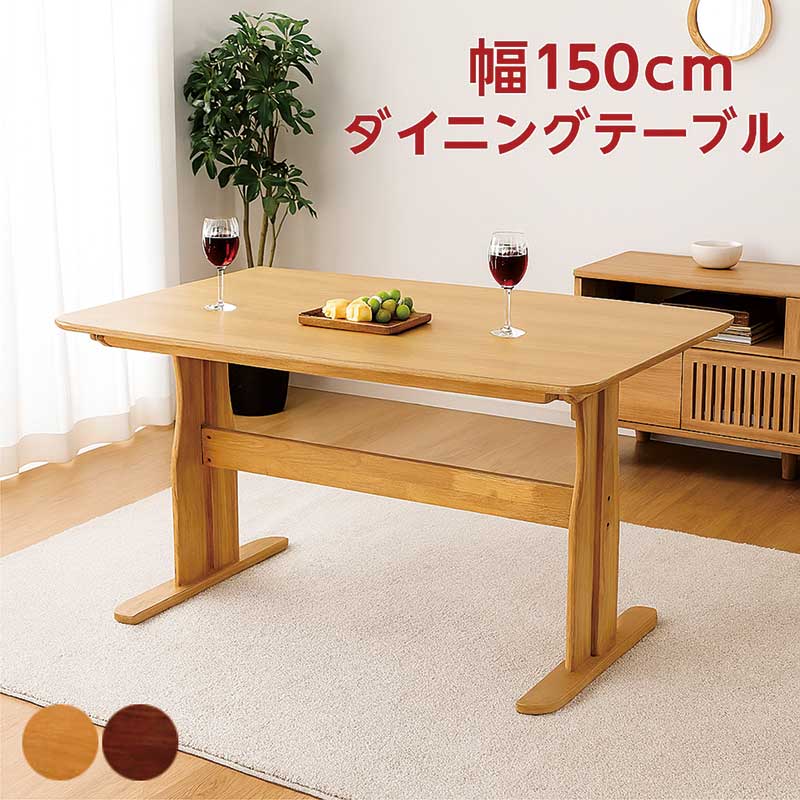 ダイニング テーブル ワイド150天板 幅150cm 150x90 4人用 4人掛け 角丸 長方形 2本脚 t字脚 オーク ウォールナット ラバーウッド無垢材 天然木 ナチュラル ブラウン モダン シンプル 新生活 おすすめ
