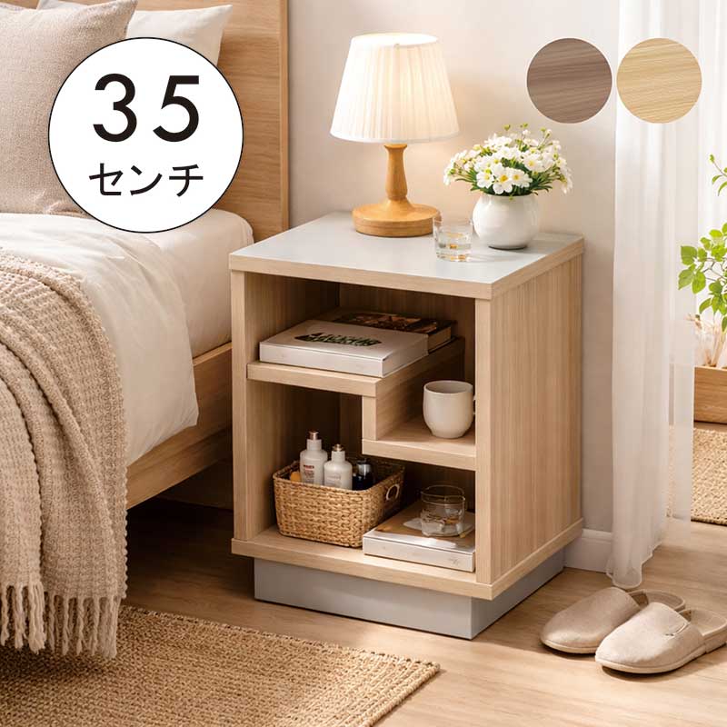 幅35cmの省スペース設計。収納棚付きで実用性抜群の北欧風サイドテーブル。ベッドサイドやソファ横に最適。