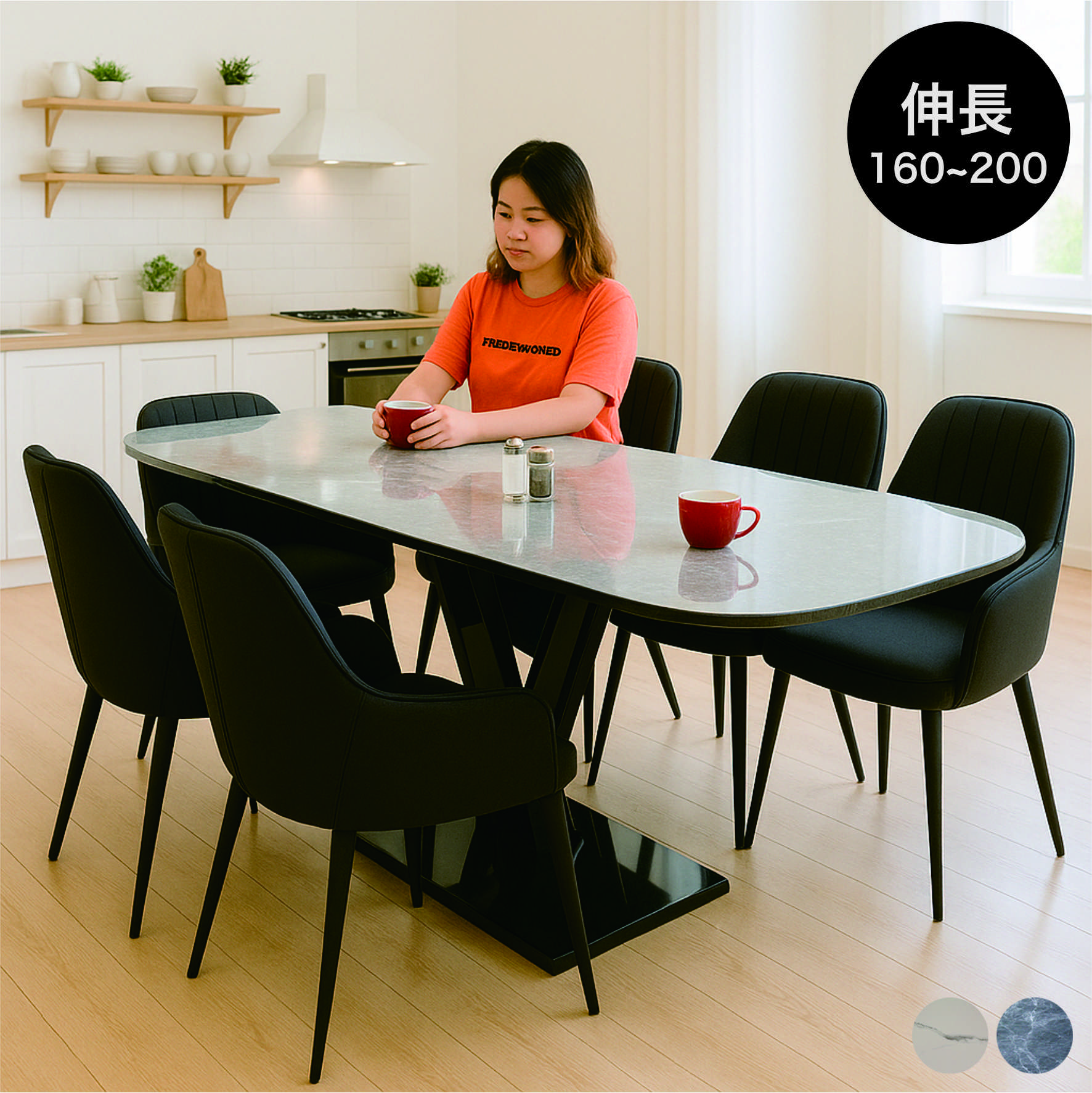 傷・熱・汚れに強いセラミック天板の伸縮式ダイニングテーブルセット
