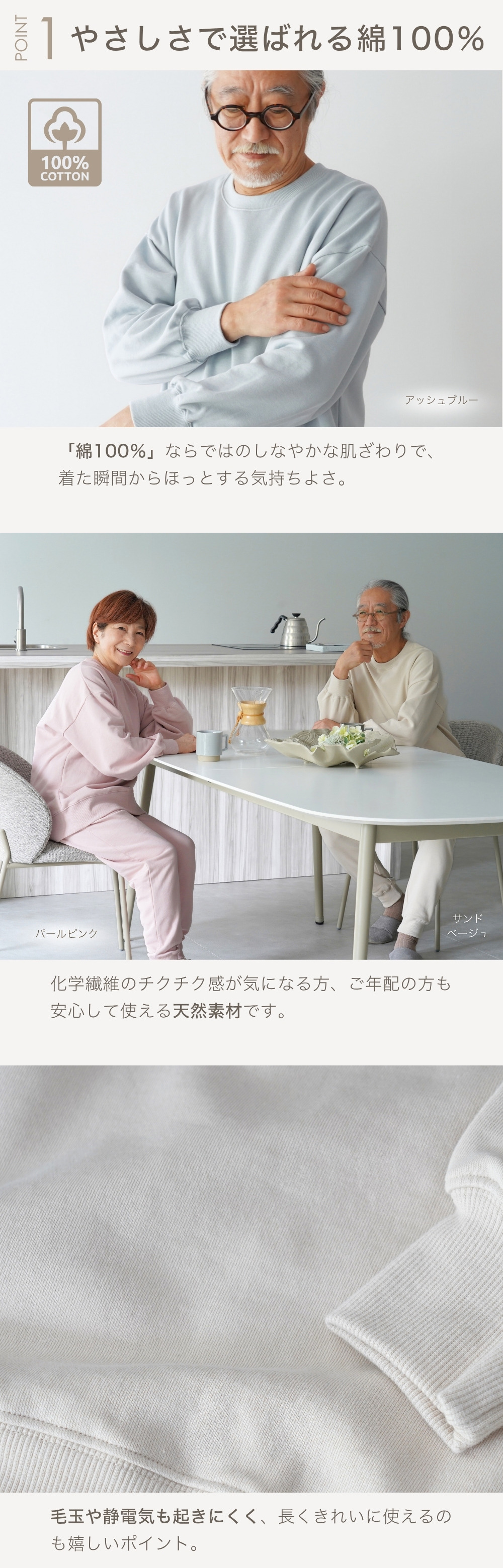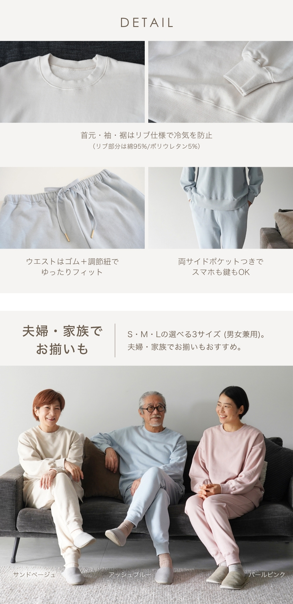 | 素材 | 本体:綿 100% リブ:綿95%・ポリウレタン5% |