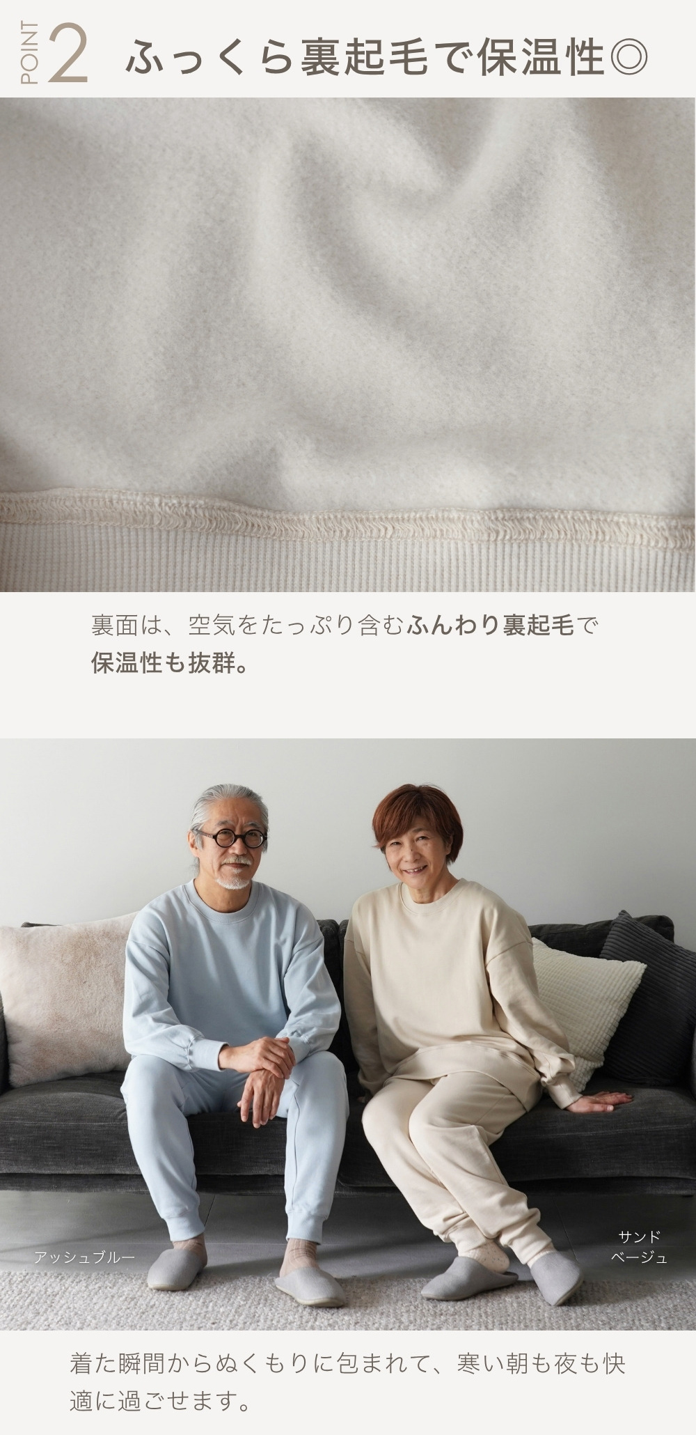 | 用途 | スウェット トレーナー スエット 上着 トップス ボトム ルームパンツ パンツ ズボン 暖パン 部屋着 家着 施設着 入院着 パジャマ 服 ナイトウエア 寝巻き 寝間着 ねまき はんてん かいまき ルームウェア ルームウエア ホームウェア リラックスウェア リラクシングウェア ワンマイルウェア リカバリーウェア ぱじゃま 冬用パジャマ 冬用ルームウェア 冬用部屋着 安眠グッズ 快眠 健康 グッズ 冬服 防寒着 防寒服 |