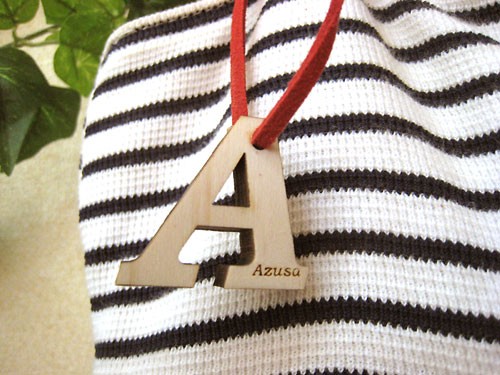 桧でできたアルファベット型のストラップにお好きな文字をお入れできます。 |