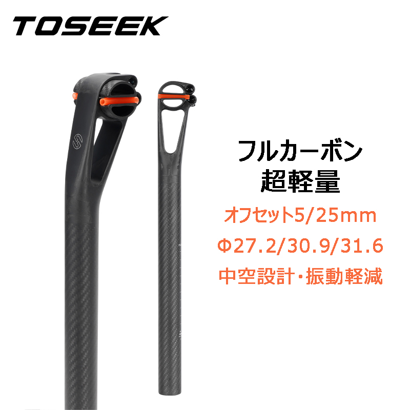 TOSEEK 丸型/楕円レール兼用 オフセット5/25 カーボンシートポスト T800 中空設計 27.2/30.9/31.6 ロードバイク MTB自転車 TSPC90