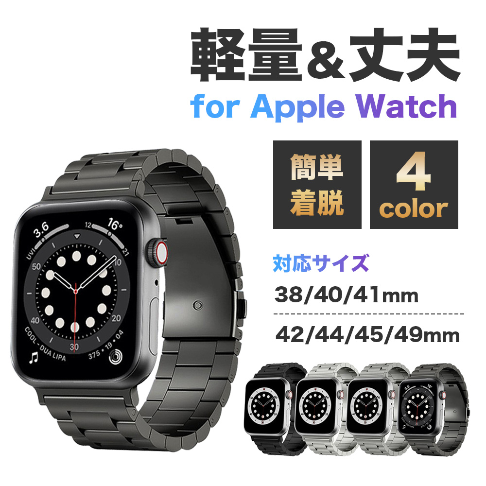アップルウォッチ バンド チタン Applewatch ベルト おしゃれ メンズ 38mm 40 41 42 44 45 49 シンプル シルバー 軽量 防水 金属