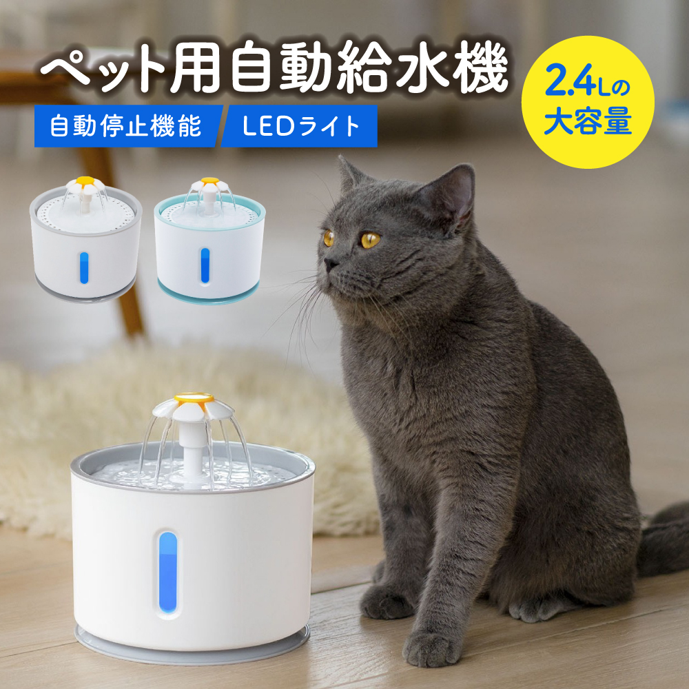 給水器 自動 ペット 水飲み 犬 猫 器 大容量 小動物 留守番 静音 循環 ウォーターサーバー ライト 省エネ 浄水 LED 2.4 L
