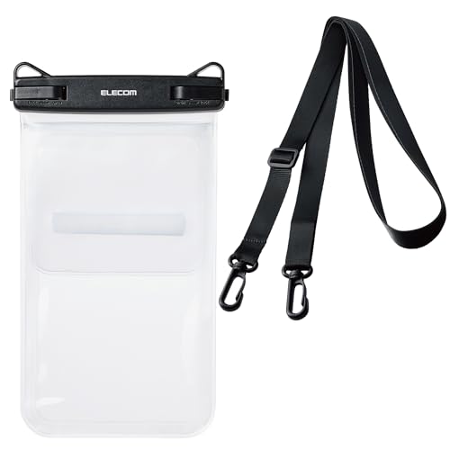 エレコム スマホ 防水ケース お風呂 海 首かけ 水中 操作不可 IPX8 顔認証 入れたまま操作可能 2つのポケット付 P-WPS2P05BK