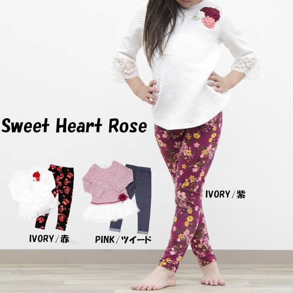 アウトレット SweetHeartRose スイートハートローズ キッズ 上下セット ガールズカットソー レギンスセット 春 秋 589850 P104M