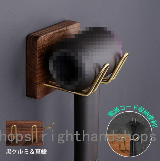天然木製 ヘアドライヤーホルダー 壁掛け ブラケット バスルーム 黒クルミ 黒胡桃 ラック 北欧モダン おしゃれ 無垢材 シンプル 豪華感 上品 高級感