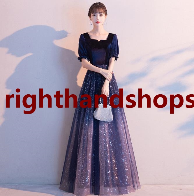 ロングドレス 演奏会 袖付き キラキラ 半袖成人式同窓会卒業式大人 ピアノ 発表会ドレス Aライン結婚式ステージ二次会花嫁母親 パーティードレス ウエディング