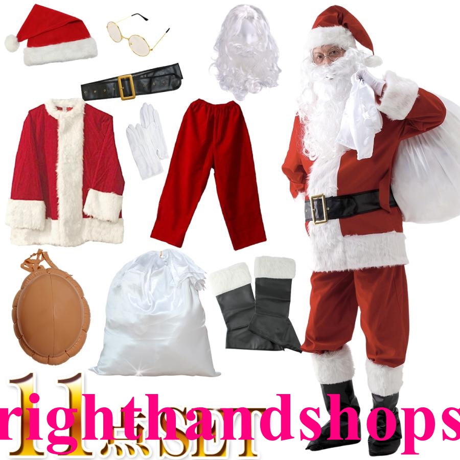 【11点セット】サンタクロース 衣装 男性 サンタ コスプレ メンズ 大人 サンタコス クリスマス セット 豪華 大きいサイズ 本格