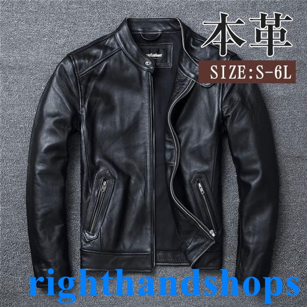 ライダースジャケット メンズ トレンド 革ジャン 本革 ジャケット 皮ジャン バイク 牛革 スタンド襟 ブルゾン B系 バイカー