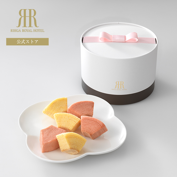 食べやすいサイズにカットしたバウムクーヘンは上品な甘さのプレーンと苺味の二種をアソート。