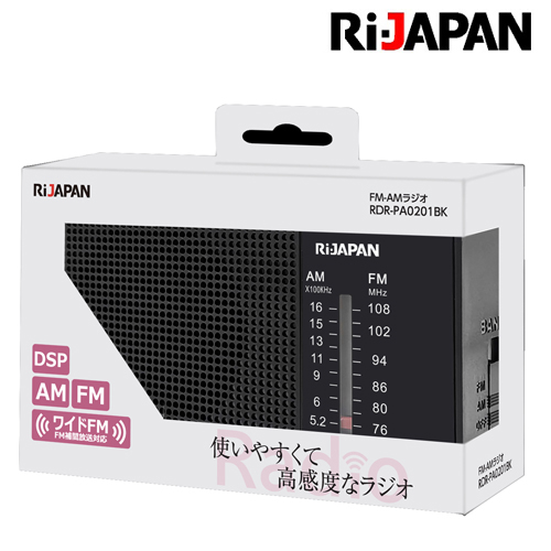 DSP FM AM ポータブルラジオ ワイドFM対応 お手軽ハンディポータブルラジオ 横置き ブラック RDR-PA0201BK 高感度 非常用 防災 RIJAPAN アールアイジャパン