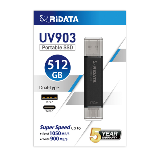 ポータブルSSD UV903 512GB BK PSSD-Dual USB3.2 Gen2 USB Type-A Type-C デュアルコネクタ 512GB BK 大容量 超高速データ転送 コンパクト RIDATA ライデータ