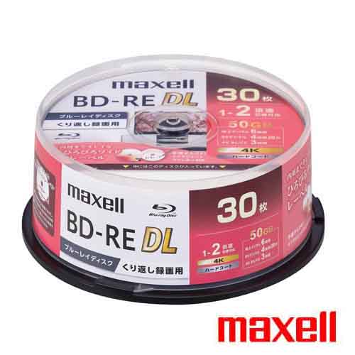 【在庫有】ブルーレイディスク くり返し録画用 30枚スピンドルケース BD-RE DL50GB2層 2倍速対応 4K対応 ひろびろワイドレーベル BEV50WPG.30SP maxell マクセル