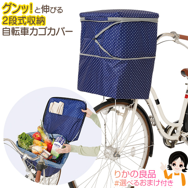 グンッ!と伸びる2段式収納で容量アップ!自転車カゴカバー『2段式自転車前カゴカバー』